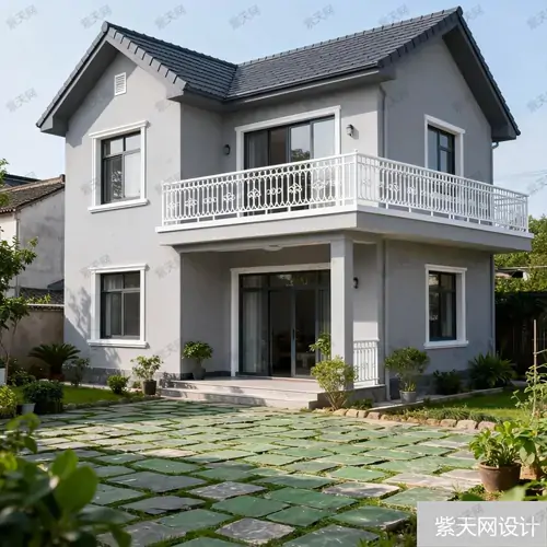 自建房四张不同风格写实效果图,1. 现代极简风:浅灰仿石漆外墙 …