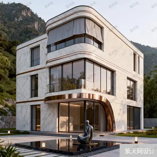 80 平长条联排,正面浅灰陶瓦 + 白色仿镬耳墙造型,骑楼挑檐用钢…